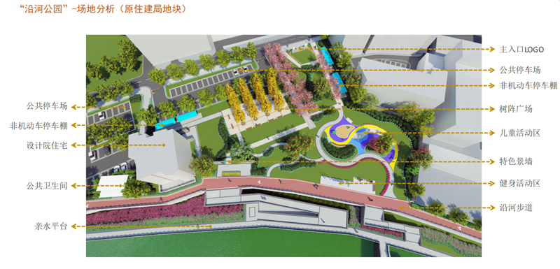 ①南門大橋下沉廣場(chǎng),主要建設(shè)內(nèi)容為跌級(jí)花海、下沉舞臺(tái)、沿河步道(全長(zhǎng)約為2.1KM)、親水平臺(tái)步道(全長(zhǎng)約為2.1KM)。