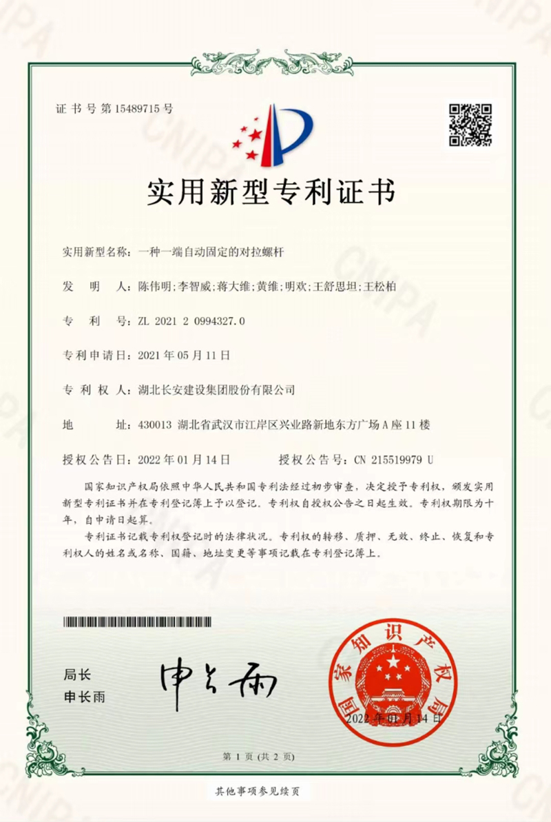 實(shí)用新型專利:一種一端自動(dòng)固定的對(duì)拉螺桿