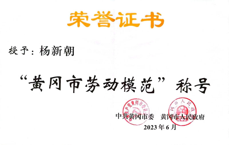 楊新朝經(jīng)理榮獲“黃岡市勞動模范”稱號