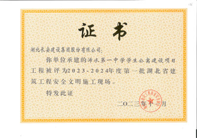 黃岡市白蓮河橋北區棚戶改造10#-14#樓等3個工程榮獲2023-2024年度第一批湖北省建筑工程安全文明施工現場