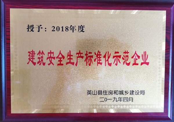 2018年度建筑安全生產(chǎn)標(biāo)準(zhǔn)化示范企業(yè)(英山)