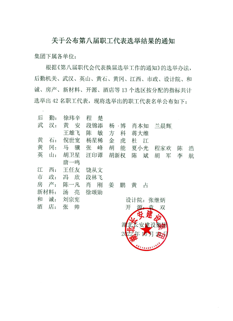 集團第八屆職工代表選舉結果公告