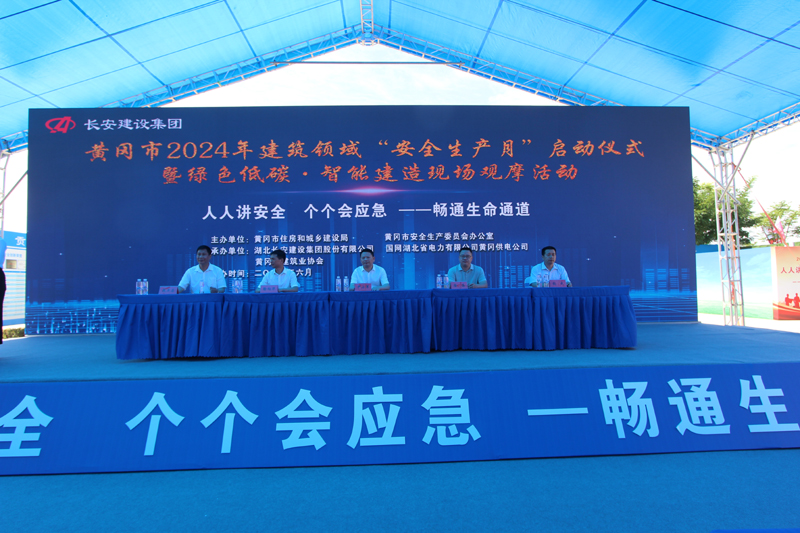 2024年6月是第23個全國安全生產(chǎn)月,主題為“人人講安全、個個會應(yīng)急—暢通生命通道”。為了進一步強化安全意識,壓實安全責(zé)任,提高應(yīng)急處置能力,由黃岡市住房和城鄉(xiāng)建設(shè)局、黃岡市安全生產(chǎn)委員會辦公室主辦以及湖北長安建設(shè)集團股份有限公司、國網(wǎng)湖北省電力有限公司黃岡供電公司、黃岡市建筑業(yè)協(xié)會協(xié)辦的黃岡市2024年建筑領(lǐng)域“安全生產(chǎn)月”啟動儀式暨綠色低碳?智能建造現(xiàn)場觀摩活動,于6月3日在國網(wǎng)湖北省電力有限公司黃岡供電公司生產(chǎn)綜合用房項目舉行。國網(wǎng)湖北省電力有限公司黃岡供電公司三級職員張成同志致歡迎辭,湖北長安建設(shè)集團股份有限公司副董事長、總經(jīng)理葉發(fā)保作經(jīng)驗交流發(fā)言。黃岡市住建局黨委書記、局長尹小軍以及黃岡市建筑業(yè)協(xié)會會長、湖北長安建設(shè)集團董事長段衛(wèi)昌出席會議并講話,與主席臺領(lǐng)導(dǎo)嘉賓共同啟動觸摸球,標志著以國網(wǎng)湖北黃岡供電公司生產(chǎn)綜合用房項目為引領(lǐng)的黃岡市2024年建筑領(lǐng)域“安全生產(chǎn)月”活動正式啟動,全面展開。