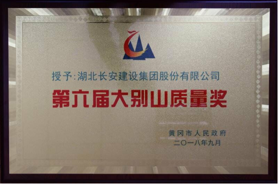 集團公司榮獲“第六屆大別山質量獎”。