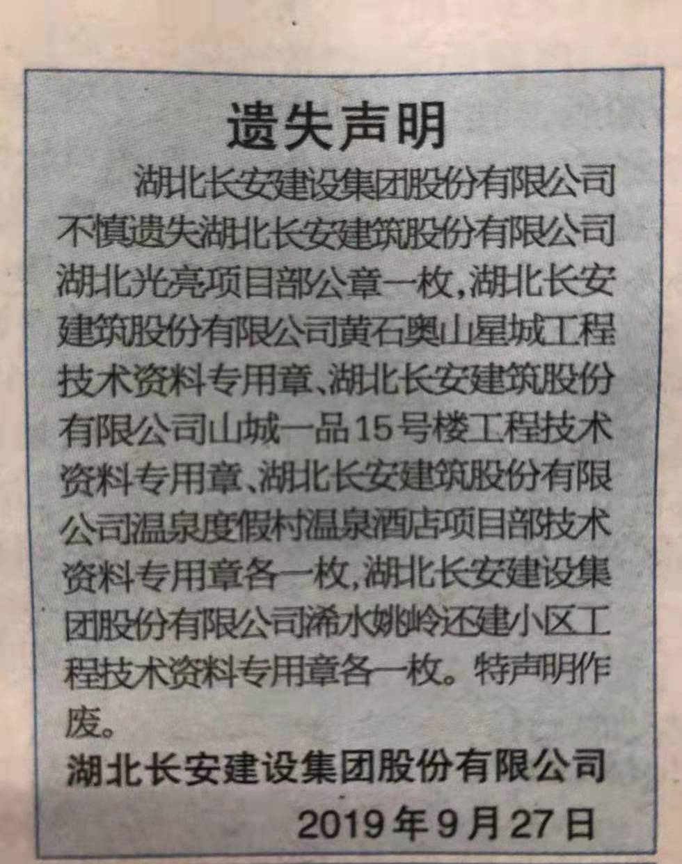 以下五枚印章聲明作廢,詳見2019年9月27日《黃岡周刊》