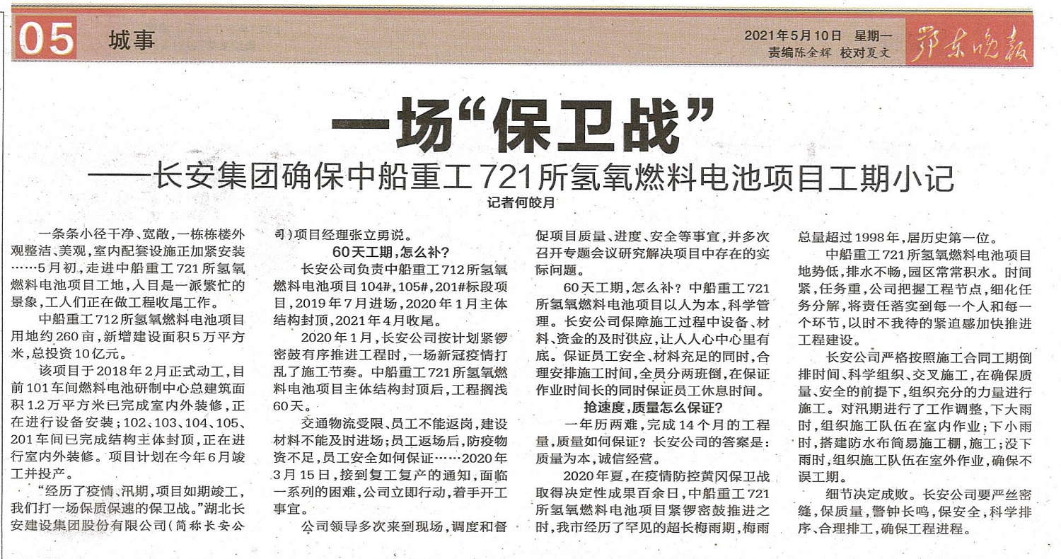 鄂東晚報報道公司中船重工721所氫氧燃料電池項目施工